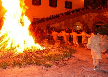 The traditional St. Joseph Torch Feast in Pitigliano, a direct descendant of ancient bonfires, evokes the legend propitiatory arrival of Spring. In the Maremma inland, the night of Saint Joseph recalls an ancient pagan ceremony: on Spring equinox a purifying bonfire propitiates the arrival of the new season. The ritual, that since Etruscan was made next to that of the "seed buried" symbol of life, was then Christianized, like many other pagan rituals, and approached during the Middle Ages to the feast of Saint Joseph.