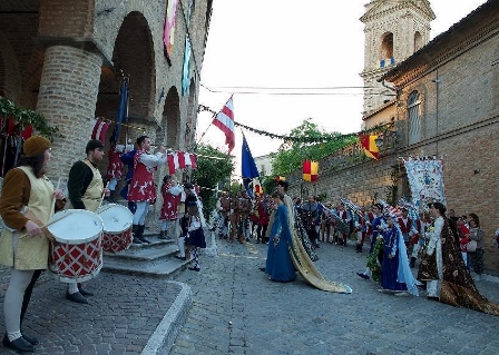 All participants wear period clothing. The height of the festival takes place Sunday afternoon, at the medieval tournament, la Giostra dell'Anello ( Joust of the Ring), during which horsemen challenge each other in a competition that requires ability and skill. The conclusion of the joust is signalled by the shouts of joy of the winning guild. The following Tuesday, in San Rocco Park, townspeople celebrate at the so-called Baccanals, celebrations that remind us of a Piceno pagan ritual.