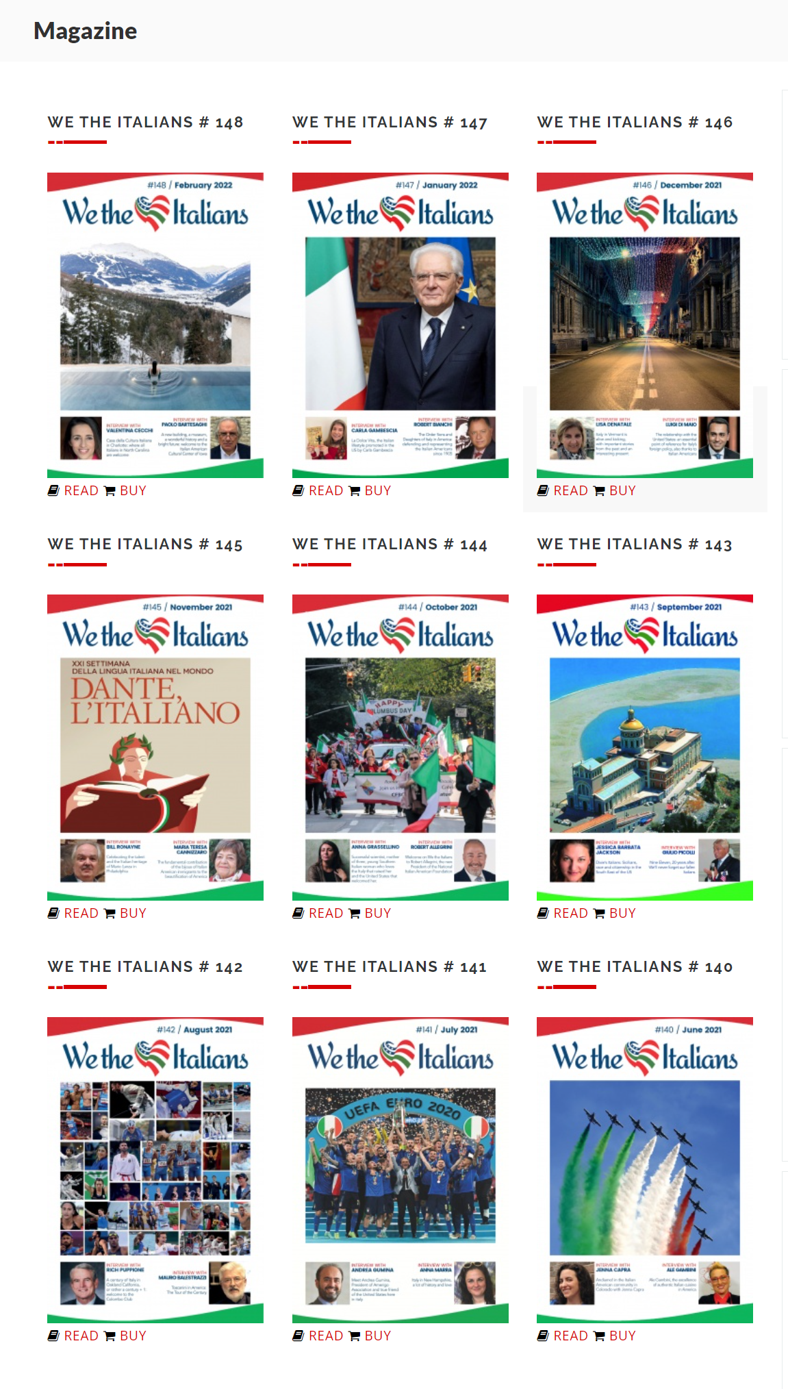 Let me remember you that the yearbook of We the Italians is available with the 24 interviews of the past year, both in Italian and English. This is our eighth book: one in English, one in Italian, and six yearbooks like this one, in two languages. In this first month the edition of 2021 has sold much more than the editions of previous years in their first months of release, and this makes me very happy because it rewards the work of all of us. I hope more of you will want to purchase the volume, which you can preview and buy here.