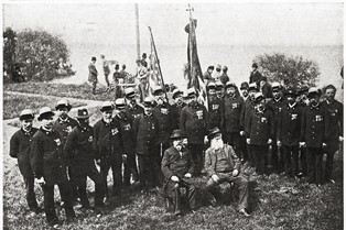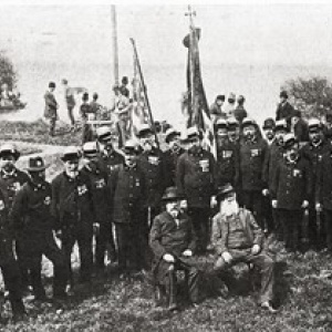 On 12 December 1871 Antonio Meucci set up an agreement with some Italian American businessmen in order to constitute the Telettrofono Company and to file a patent numbered 3335 and titled "Sound Telegraph". The photo shows several veterans of the Italian wars. The white-bearded man in the foreground is Antonio Meucci, who had hosted Giuseppe Garibaldi in his Staten Island home during his exile in the United States in the 1850's.