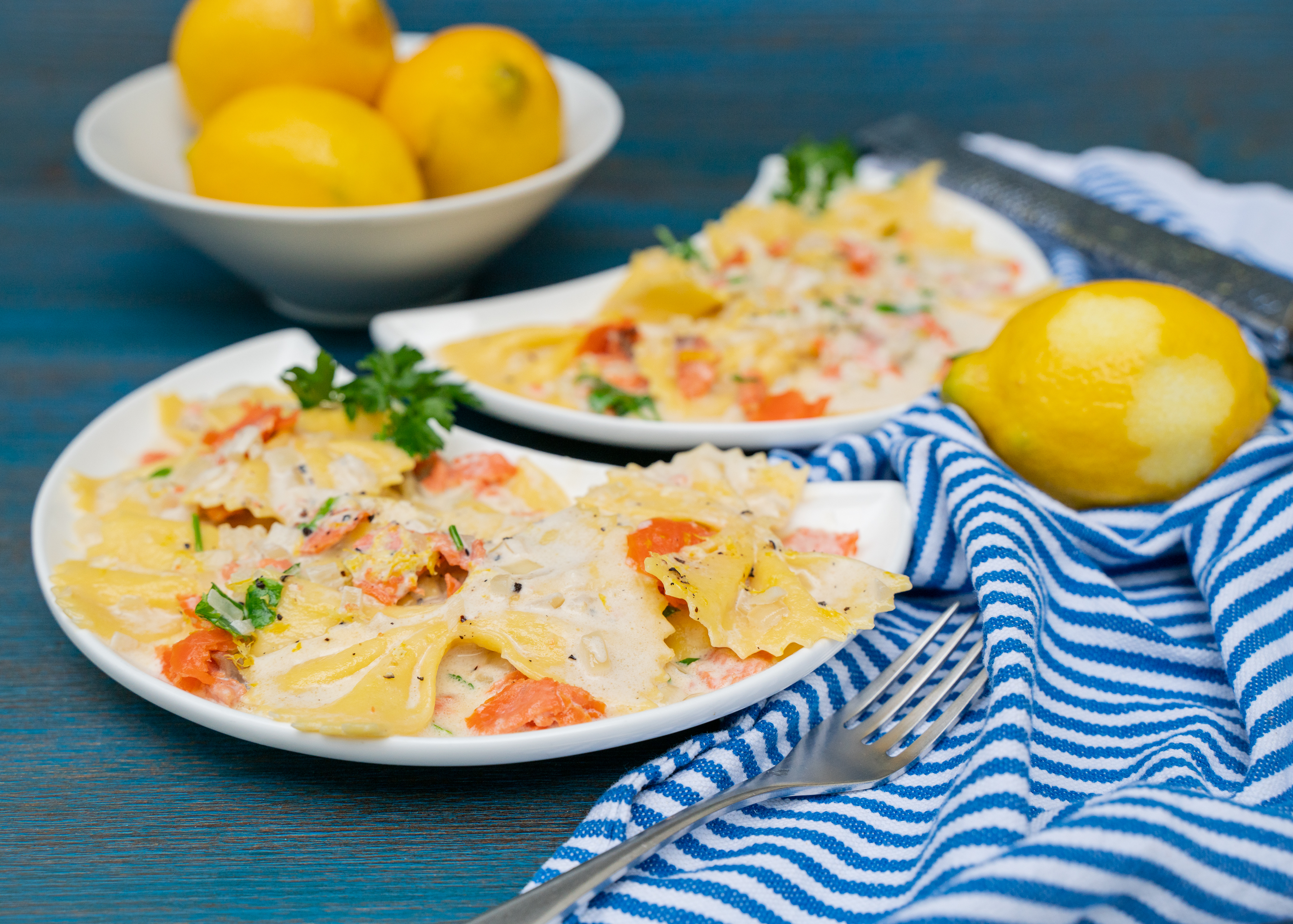 As a cook, when I think of butterflies in the summertime, I imagine the smiles that are conjured up not only by children, but of adults as well. It is with this spirit that I invite you to try my Farfalle (which means butterflies in Italian) con salmone recipe – enlived with parsley and fresh lemon, this lovely pasta dish will turn any late spring or summer gathering into a celebration.