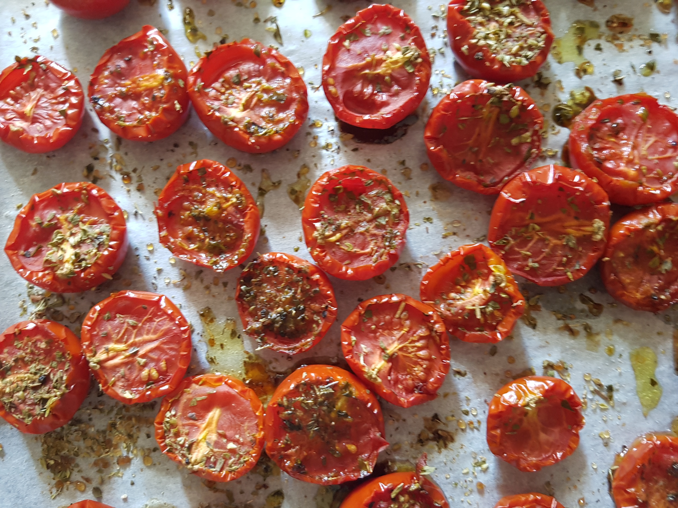 6. Place in the oven and bake for 2 hours until the tomatoes are wilted.
