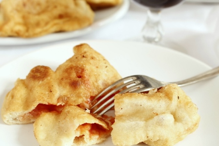 Panzerotti are so Italian that there is no a real translation into English, like pasta, pizza or focaccia. They are prepared with a dough similar to that of pizza or focaccia and are stuffed with tomato and mozzarella, closed to a half moon shape and then deep fried until golden brown. A delight for the palate, to which it is hard to resist ... one leads to another. They trace back their origin to the peasant tradition of Apulia, in particular to Bari (a beautiful Medieval port city). They are an example of how you can prepare an appetizing dish with a few simple ingredients.