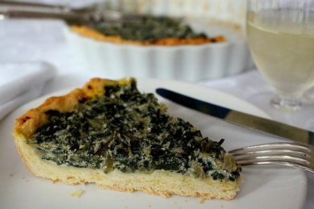 This pie makes a colorful and a tasty starter or a delicious main dish. The crust is made with briseée dough while the filling is prepared with Swiss chard, first boiled, then sautéed with anchovies and mixed with fresh ricotta cheese. This is a superb combination of flavors.