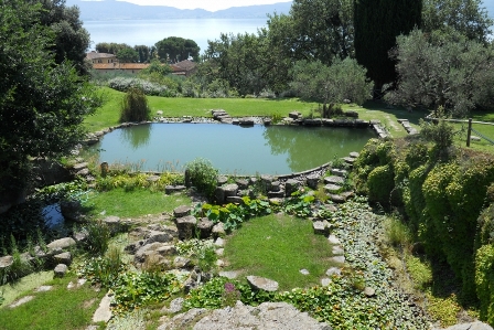The Garden of Aquatic Plants, also called Porcinai Pool, is located on the island Polvese in the protected area of the Park of the Trasimeno, Umbria. It was built in the late 50s of the twentieth century, commissioned by Count Giannino Citterio, owner of the island, by the great landscape architect Peter Porcinai (1910-1986), who created a pool depth of 5.2 yards fully excavated in the rock.