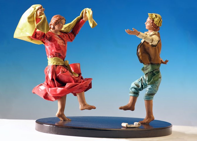 The old papier-mâché masters say that the secret to the art lies in the 'fuocheggiatura' (finishing), the phase in which the statue is modelled with small red-hot spoons that are used to fix the movements or folds that have acquired imperfections during drying, and to consolidate the structure of the statue. It can be carried out on paper that has just dried, or on paper that has been brushed with a layer of “pearl glue”, another hardening substance that facilitates the work and which turns reddish-yellow, enriching the tones of the paper. The statue can even be left like this, only 'fuocheggiata' (finished).