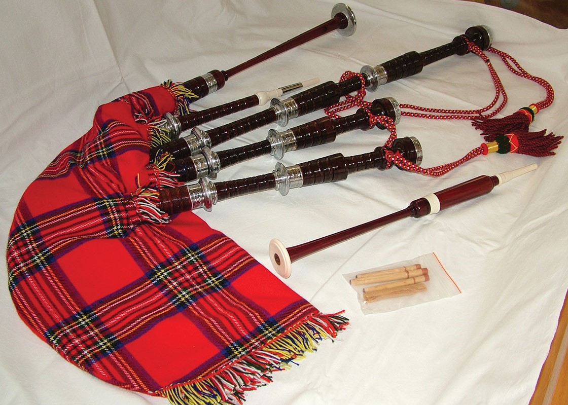 “Keyed” pipes have two chanters of different length and two drones, the longer of which produces the sound, while the second is mute, and double reeds on all the sounding pipes. The woods used include cherry for the stock and olive for the chanters and drones; maple, plum, almond, boxwood and exotic woods are rarely used. For the skin, which is essentially a bag that holds air, car inner tubes covered in faux fleece are now used.