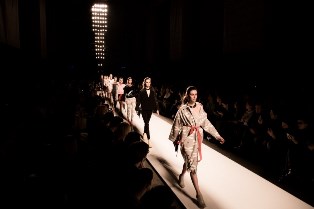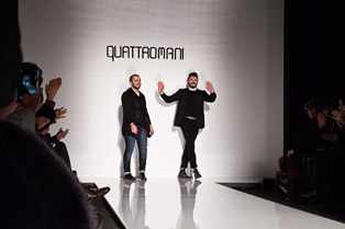 A rigorous approach and strong shapes for the Quattromani's Fall Winter collection 2014/15, presented on 26th January 2014 in official AltaRoma AltaModa calendar. The Sardinian duo focuses on clean cuts and unexpected combinations of unusual materials, following the brand's experimental vocation.