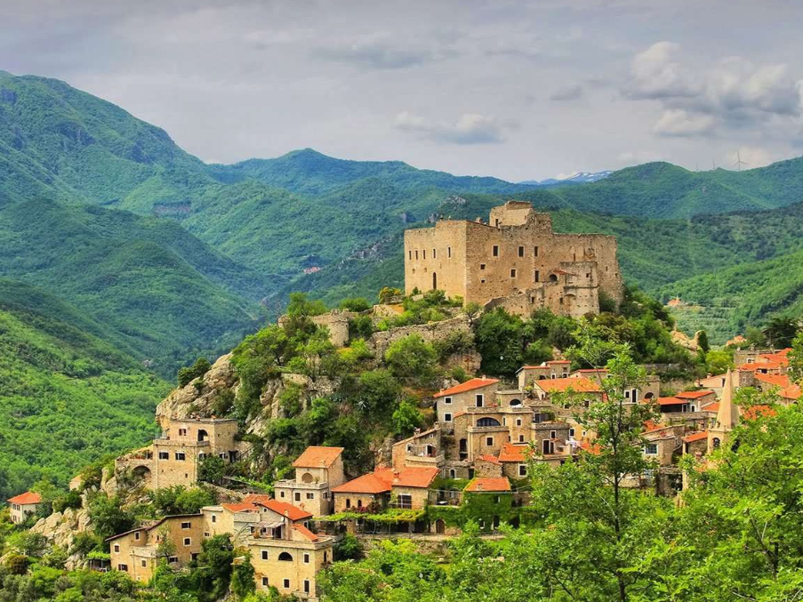 The village is characterized by its old stone houses, tufa portals, terraced roofs and arched attics (vîsà) in which figs and mushrooms were dried, the silhouettes of the ovens protruding from the walls of the houses, where bread was baked for the community, and the white frames on the windows, which recall motifs from the Alpine-Provençal area. The fortress houses, connected by arches in an earthquake-proof function on the inner streets, are reconciled with the Mediterranean look of the terraced roofs, which perhaps preserve the memory of their origins: the first inhabitants apparently came up here from the coast to escape Saracen raids. Among the houses perched on the castle slopes is the one in which Björn Afzelius composed his songs.