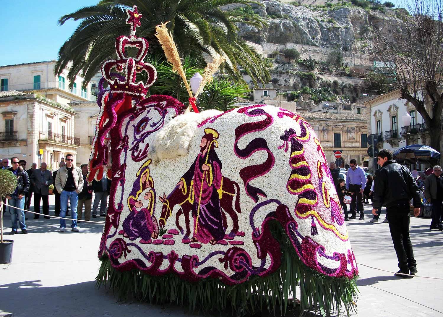 The feast shows the signs of a devotion that has its roots in the peasant culture, in the need to ask St. Joseph for the water, to grow the beans, to make the corn grow. In Scicli it never rains in March, and then it was not unusual to hear, while the ride was passing through: "Patriarca beddu, dateci l'acqua, fate piovere" (Beautiful Saint, give us water, make it rain). An image of St. Joseph in Scicli emblazoned in every stall. In those times, for the farmers, the beast was everything, the symbol of life. They needed the animal to plow the field, they needed it for transport. The effigy of St. Joseph protected the peasant family from every fatality: in exchange, the Saint received exclusive devotion, a devotion that every year still nowadays perpetuates the tradition.