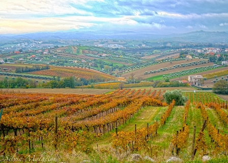 The top grapes of this region including the white grape, trebbiano d'abruzzo, also know as ugni blanc in France. It's a high acid wine, without much flavor extracted and is usually light and crisp with apple flavors. The rose' produced in the region is known as cerasuolo d'abruzzo made of the montepulciano grape that is a hearty rose' with notes of dried fruits and strawberries. Above all dominating the region's well known wines are montepulciano d'abruzzo.