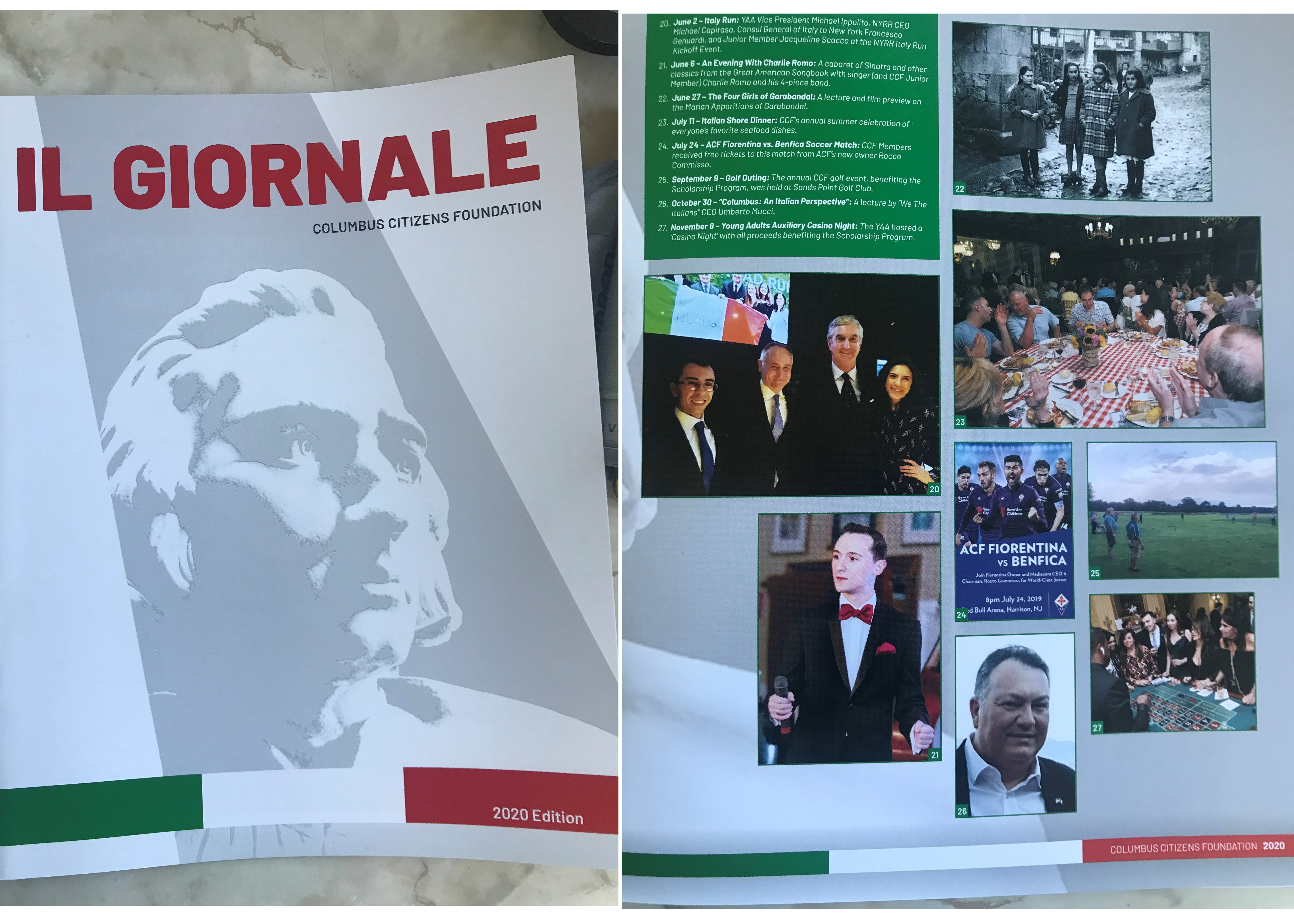 Speaking of Columbus, I had the honor to be mentioned in the magazine of the Columbus Citizens' Foundation, where it was a pleasure for me to give a speech on October 31st, in the presence of many friends. I love the Columbus Citizens' Foundation very much, it was a privilege for me.