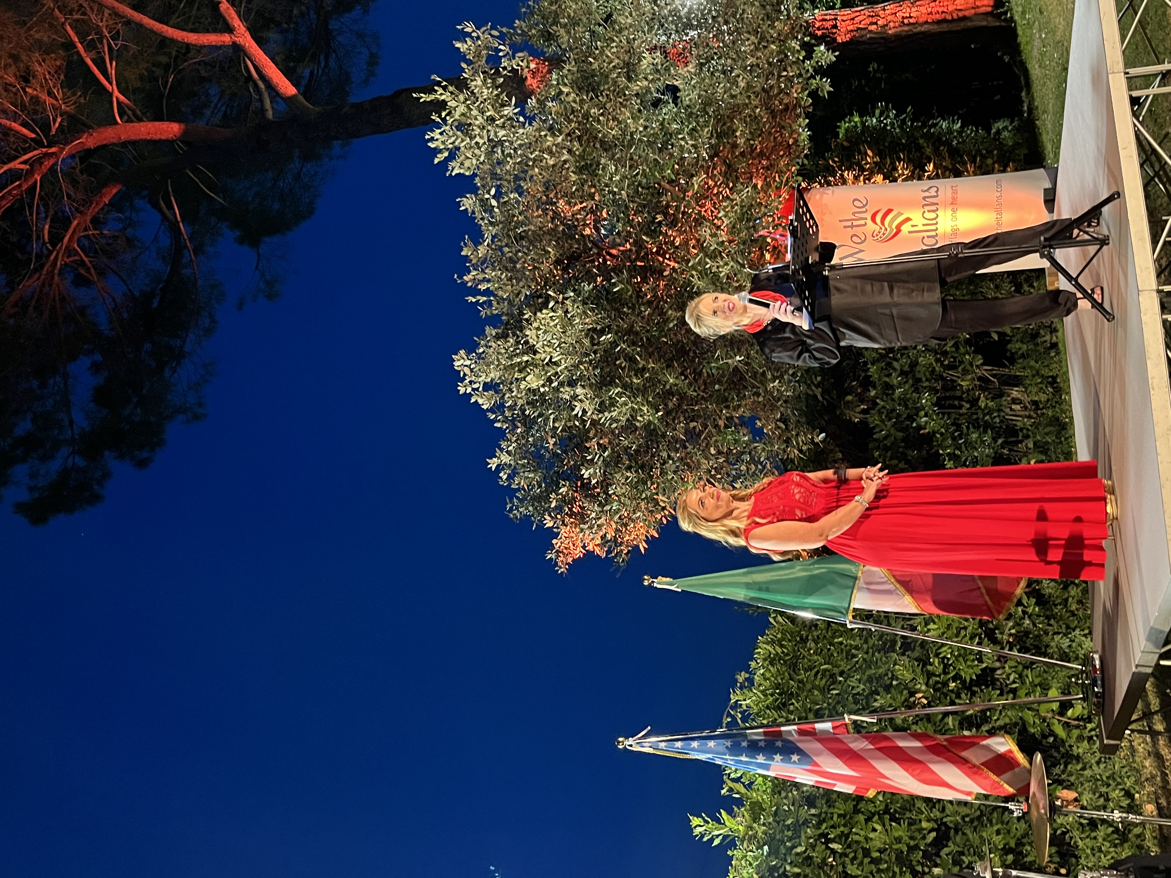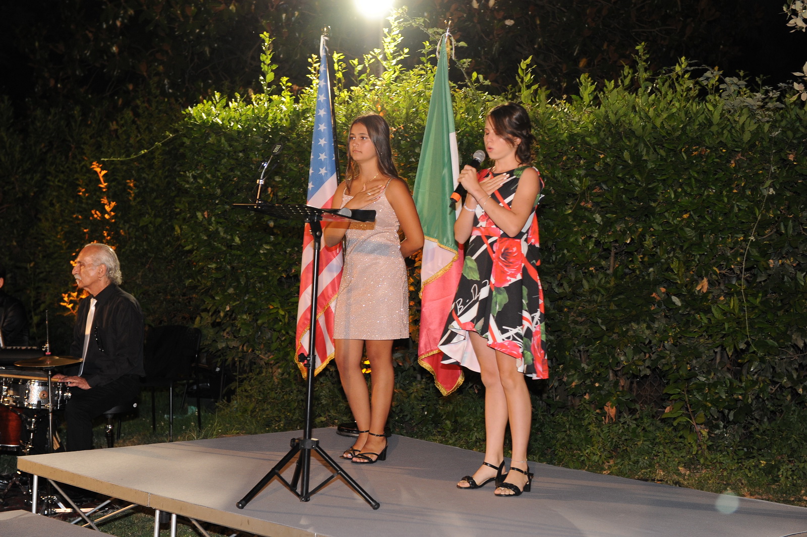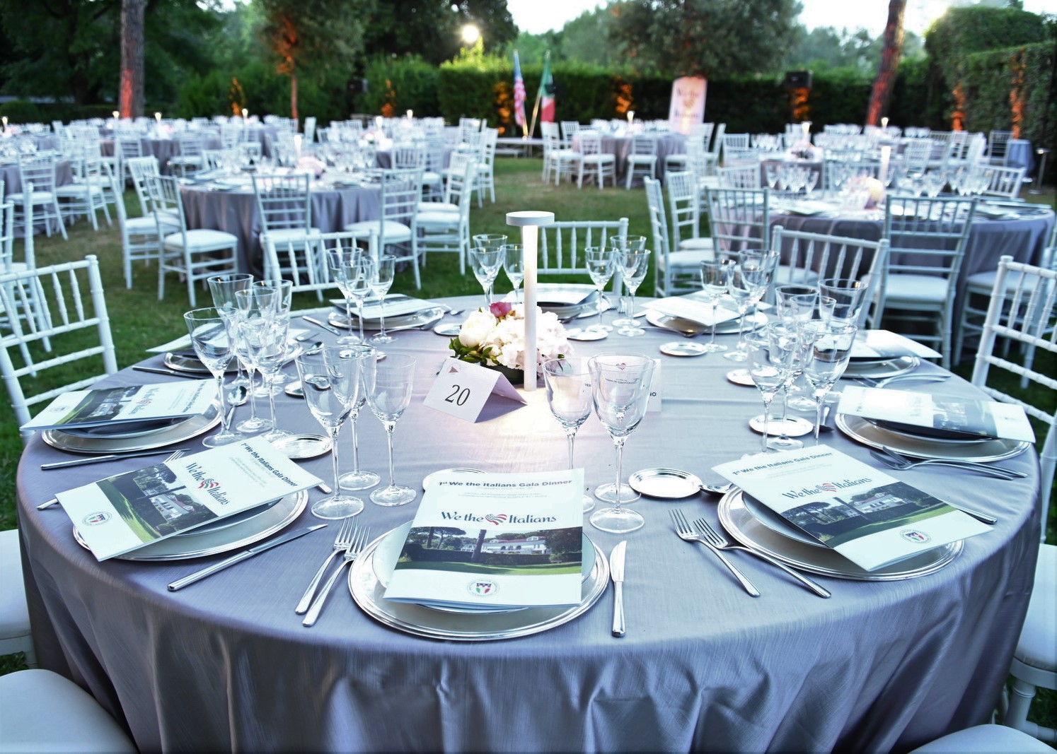 The evening began with a poolside cocktail reception that was then followed by a seated dinner on the beautiful lawn of the location, where the national anthems were performed: the Italian one will be sung by Meri Kacbufi, the American one by Sofia Robinson-Pelosi.