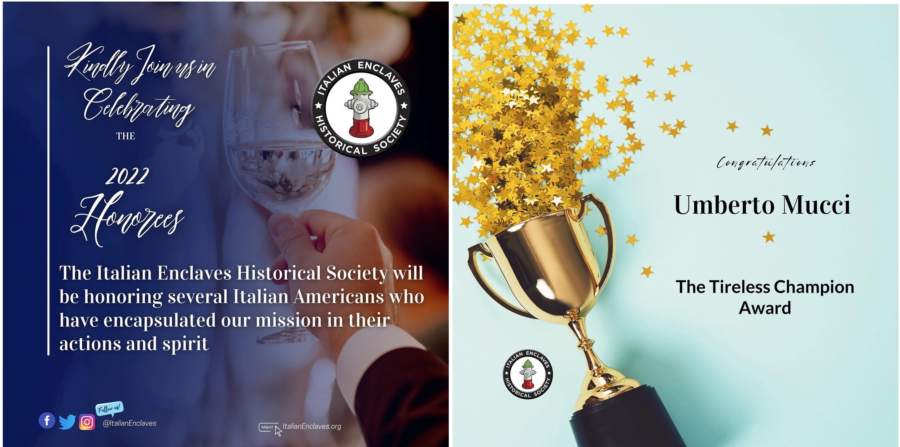 Our friends of the Italian Enclaves Historical Society were kind enough to want to give an award to me, but really it is an award to all of us at We the Italians, which I want to share with all the wonderful people who are part of our team. In this issue of our magazine you will find an interview with the founder of this magnificent institution, my friend Ray Guarini, whom I thank for the award, for the interview and for his invaluable work: you can also read the interview here.